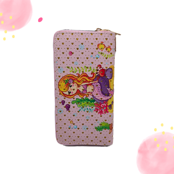 Billetera doble cierre sirena rosa