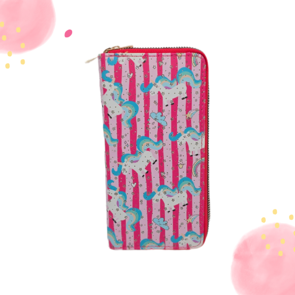 Billetera doble cierre unicornio rayas